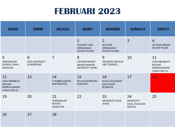 JADUAL AKTIVITI FEBRUARI 2023