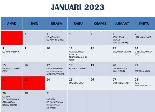 JADUAL AKTIVITI JANUARI 2023