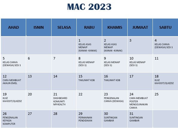 JADUAL AKTIVITI MARCH 2023