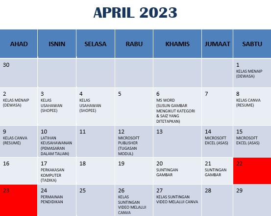 JADUAL AKTIVITI APRIL 2023