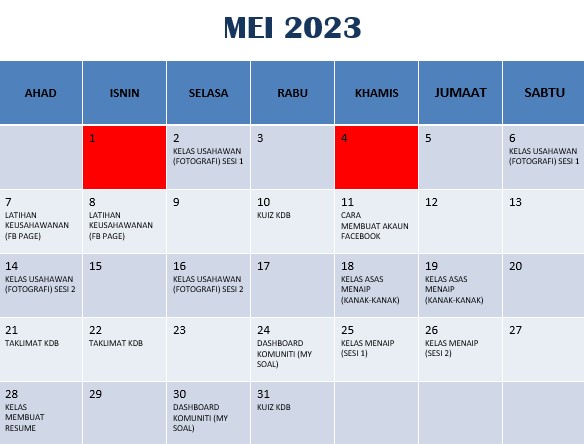 JADUAL AKTIVITI MEI 2023
