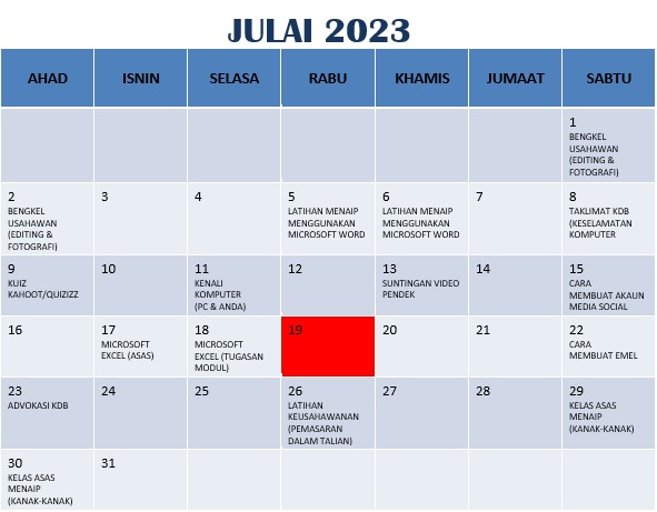 JADUAL AKTIVITI JULAI 2023