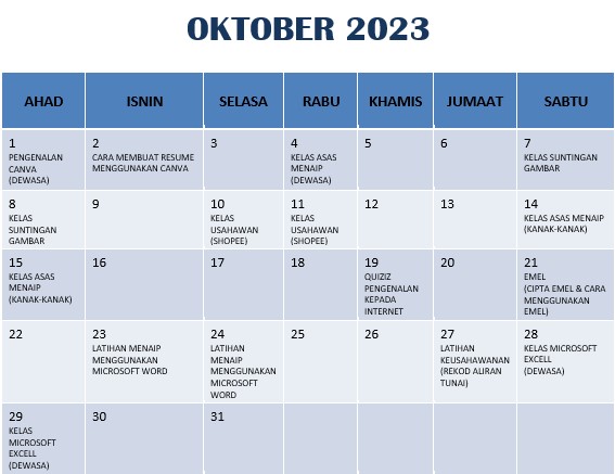 JADUAL AKTIVITI OKTOBER 2023
