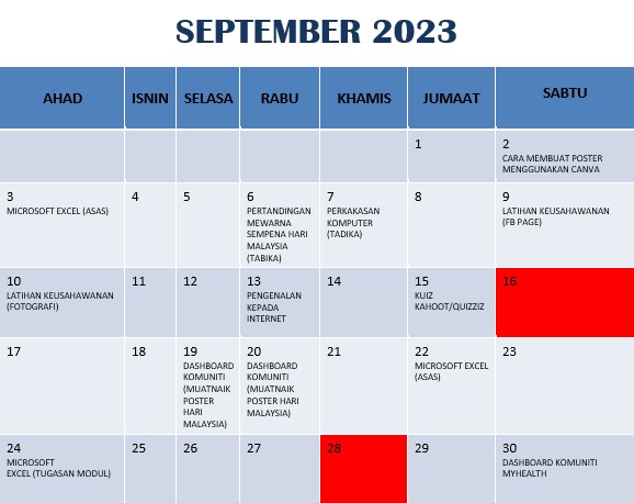 JADUAL AKTIVITI SEPTEMBER 2023