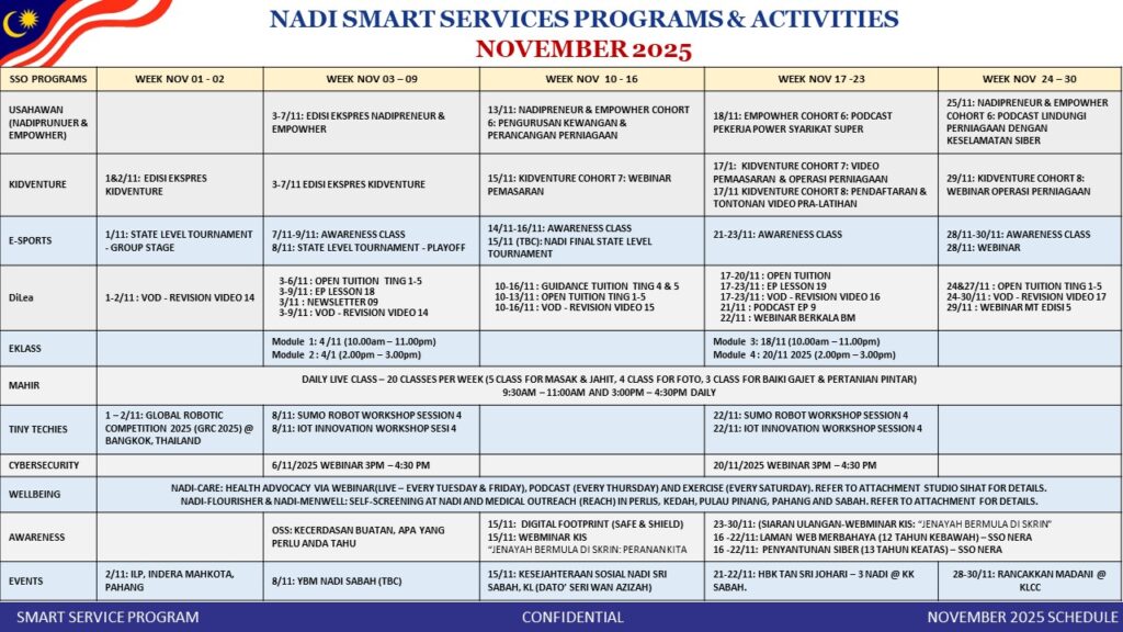 TAKWIM PERKHIDMATAN PINTAR NADI BULAN NOVEMBER 2025